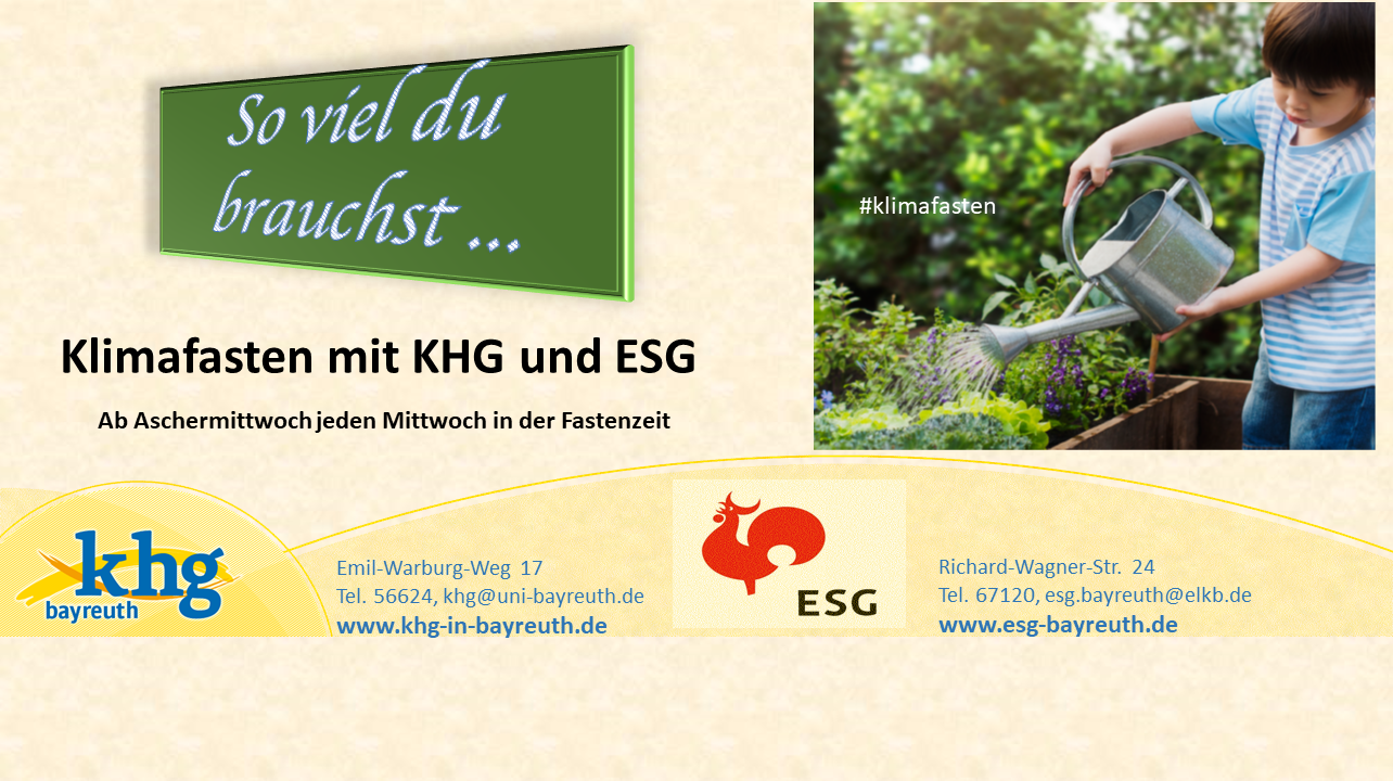 Open/Close Menu KHG Bayreuth KHG Bayreuth Willkommen bei der Katholischen Hochschulgemeinde Bayreuth