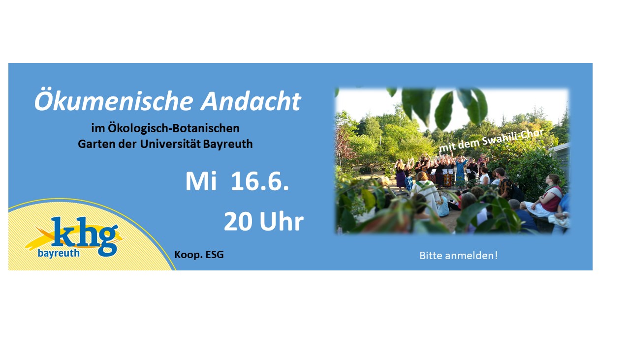 Open/Close Menu KHG Bayreuth KHG Bayreuth Willkommen bei der Katholischen Hochschulgemeinde Bayreuth